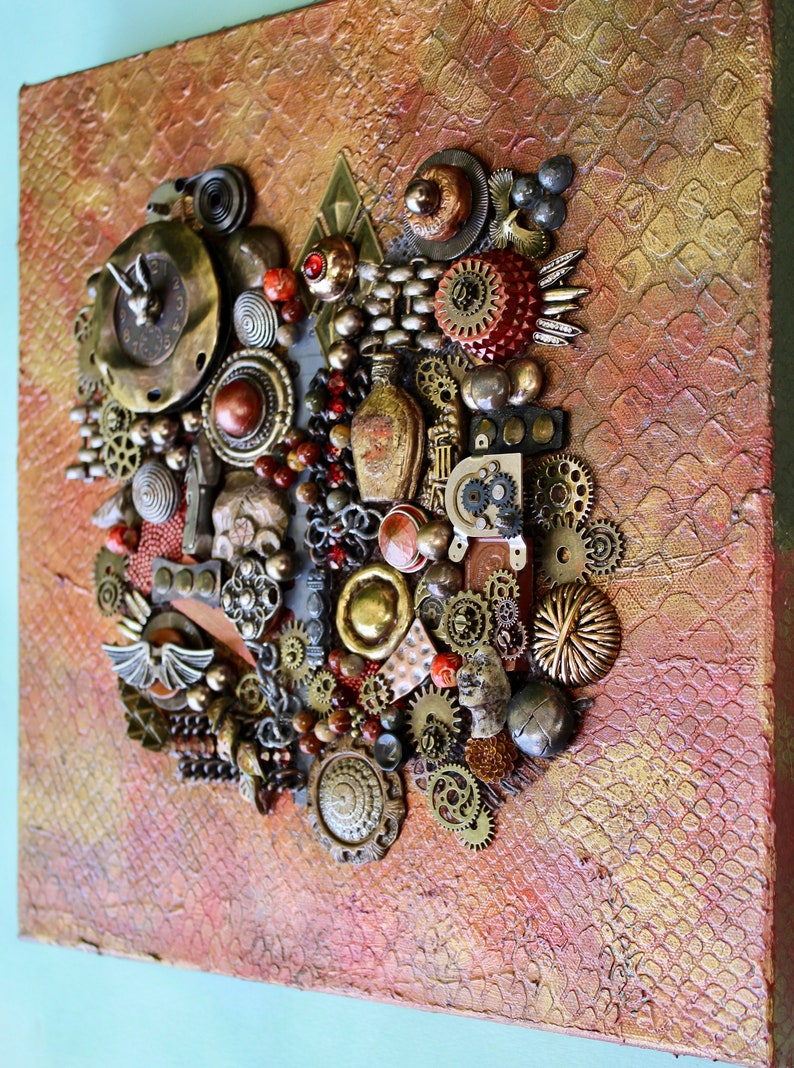 Steampunk Decor Original 3d Canvas Found Object Art Steampunk Wall Art 3d Wall Art U2013 Contemporary Collage Assemblage Collage Art Collectibles Mixed Media Collage Lifepharmafze Com